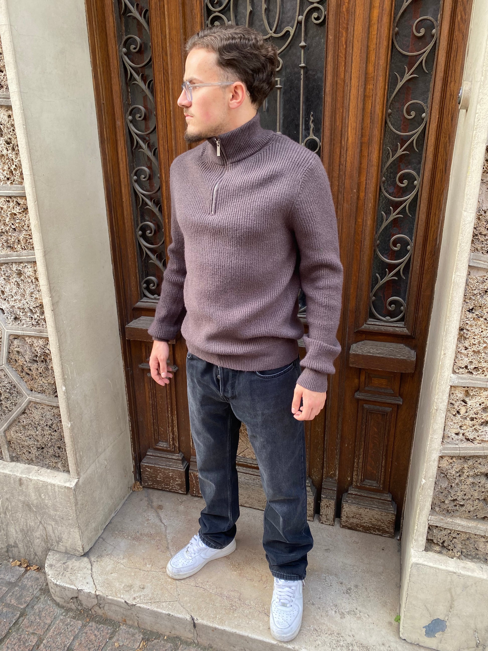 Pull zip brown